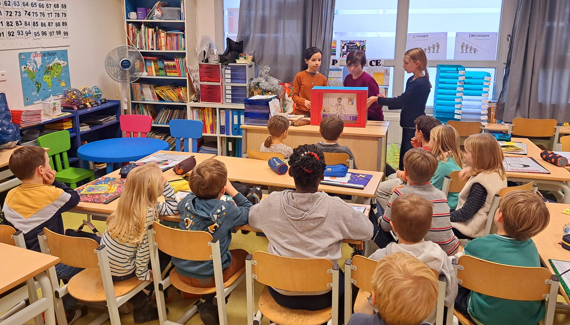 « Durant la période qui a précédé Noël, quelques élèves du collège Saint Donatien sont allés rencontrer leurs jeunes camarades de l’école primaire St Donatien pour partager des ateliers Lecture.