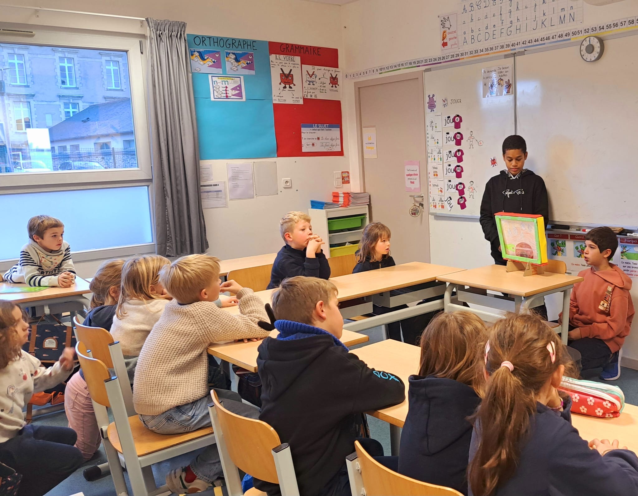 Ainsi, cinq élèves de 5ème ont présenté, sous la forme d’un kamishibaï, un conte féerique illustré qu’ils avaient écrit au cours de leur année de 6ème.