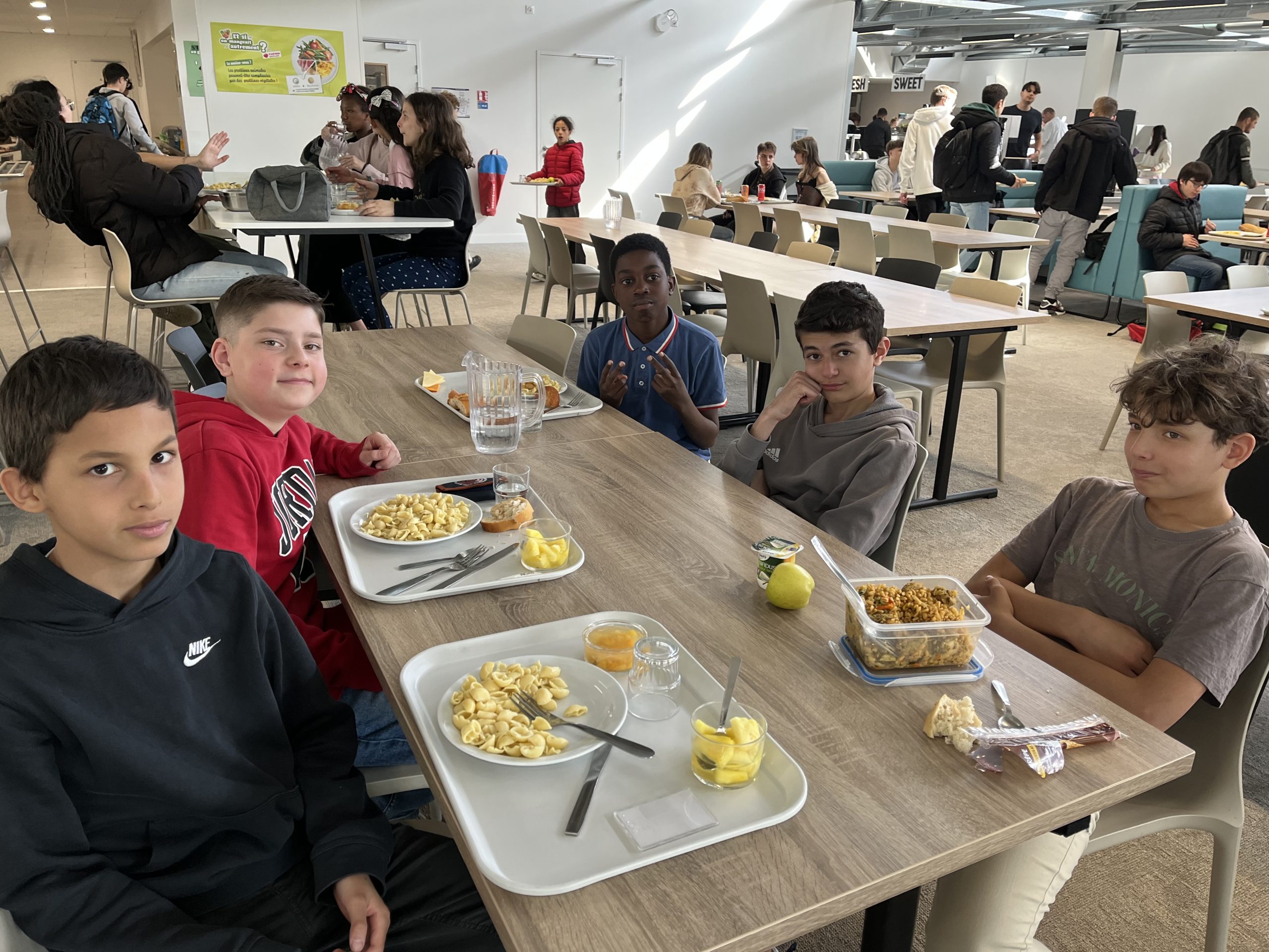 Durant cette journée, 496 personnes – élèves comme adultes – ont choisi de participer à l’opération en prenant un repas simple au self, composé d’un bol de pâte et d’une pomme, afin de soutenir ce projet éducatif. Sur environ 1000 passages au self, cette mobilisation représente près de la moitié des convives, un chiffre particulièrement encourageant.