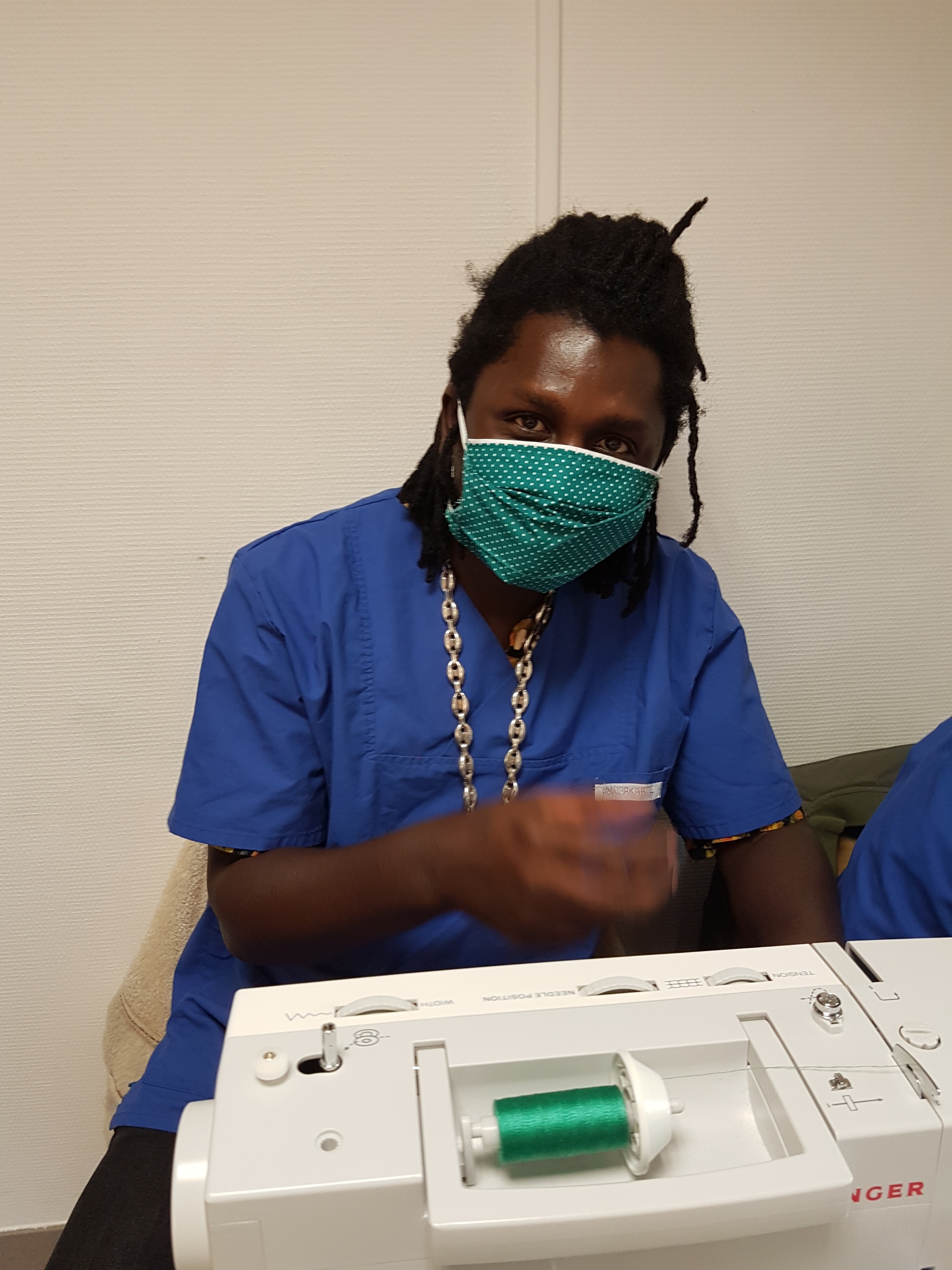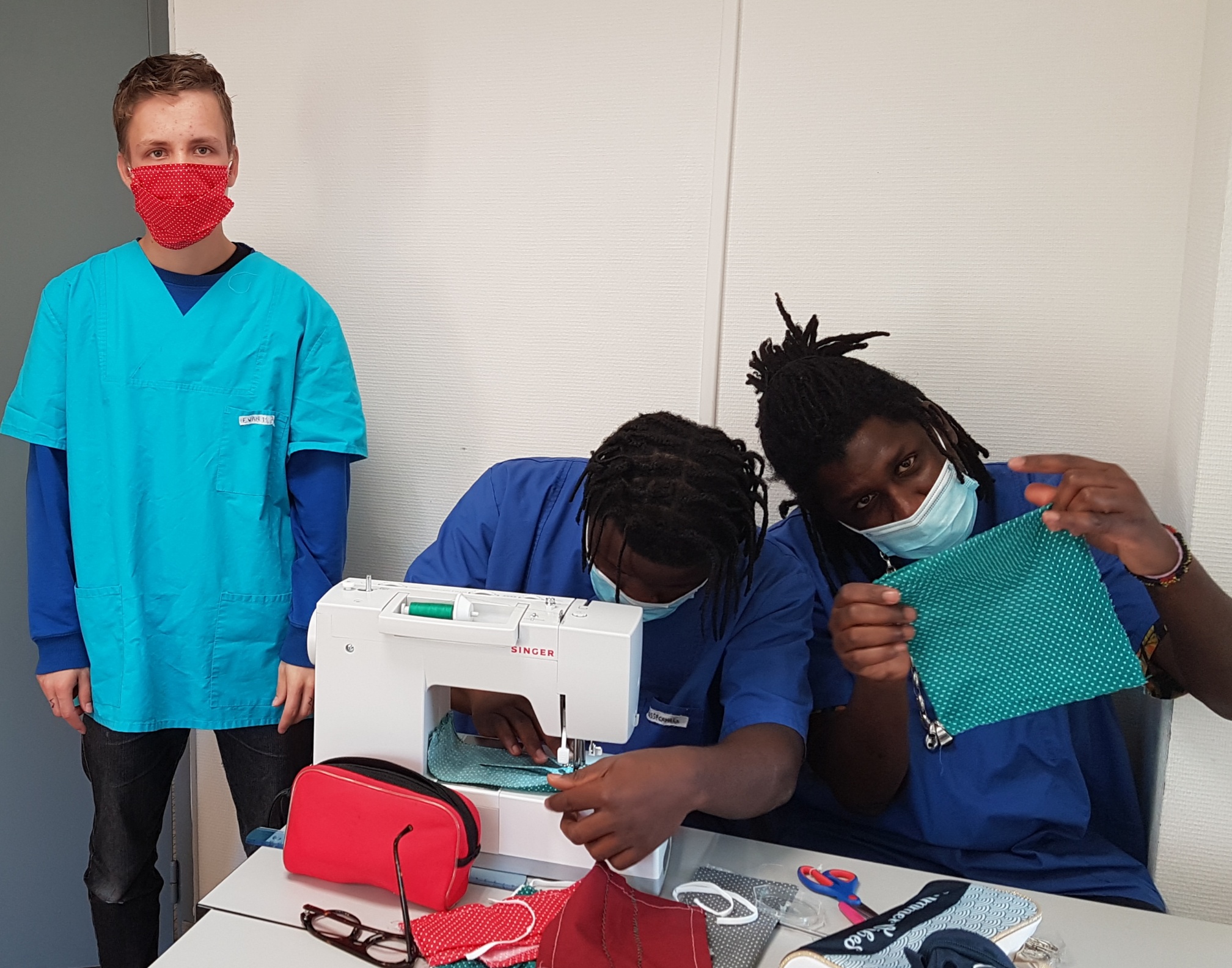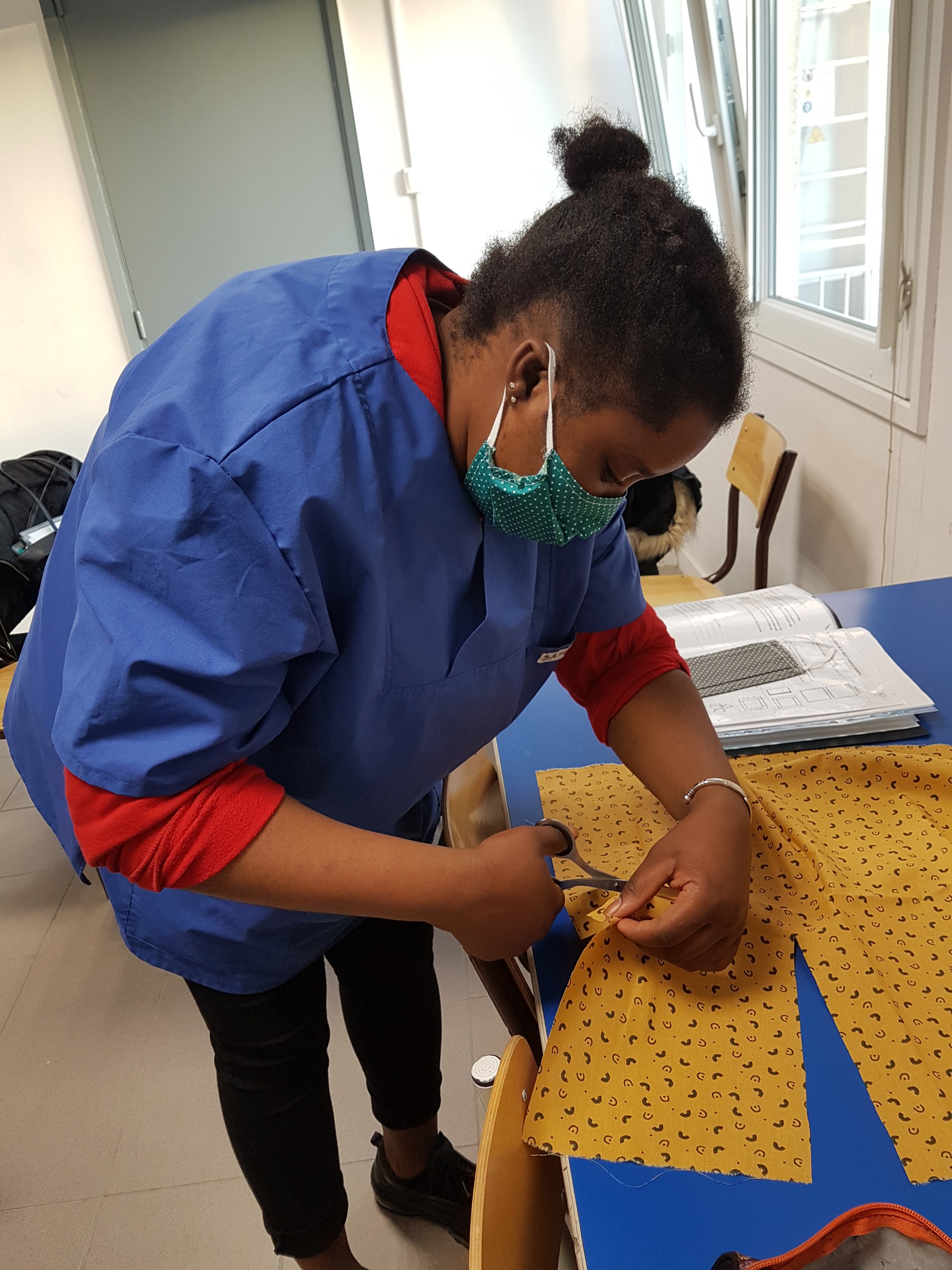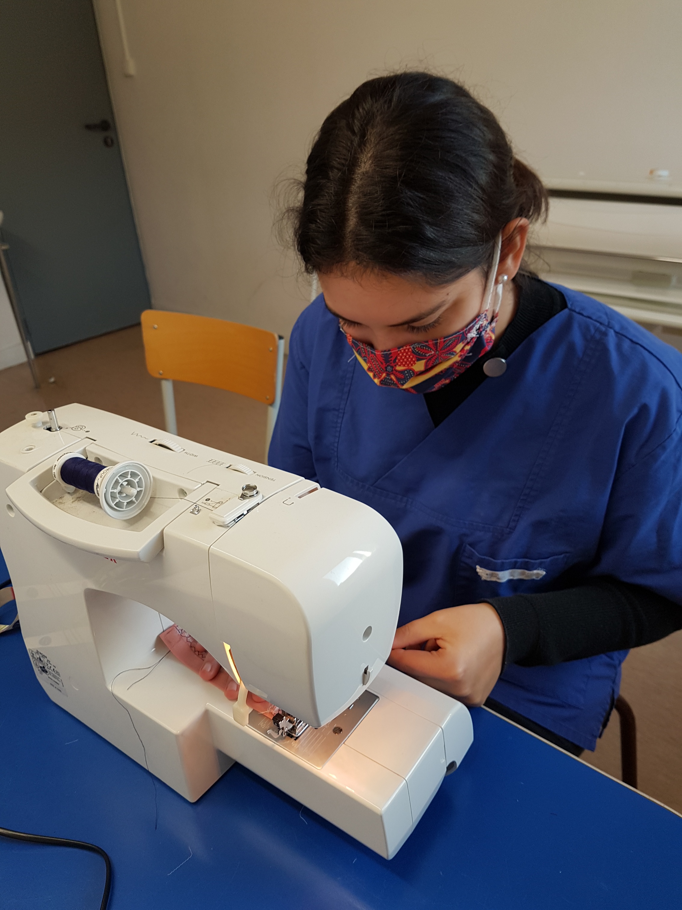 Dans le cadre de leurs travaux pratiques, les élèves de CAP ATMFC confectionnent des masques au bénéfice des migrants.