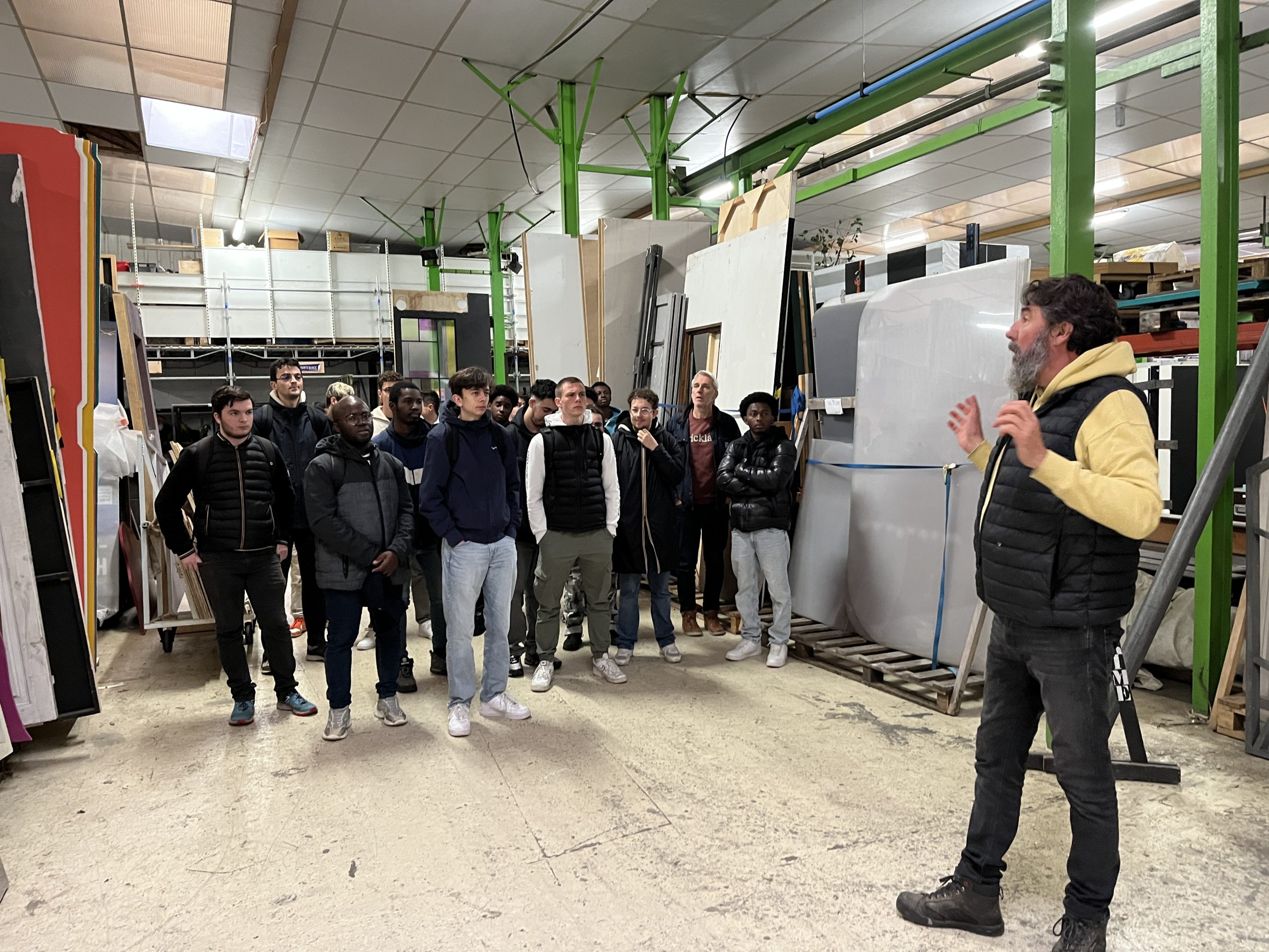 Ensuite, les étudiants ont visité la Ressourcerie Culturelle, située à quelques pas des locaux d’EIFFAGE, au 184 rue Joseph Gaillard. Accueillis par Damien FORGET, co-fondateur de la ressourcerie, les élèves ont été sensibilisés aux enjeux écologiques et au concept des 3R : Réduire, Réutiliser, Recycler. Damien FORGET a partagé sa vision passionnée d’un avenir plus durable à travers ce projet. Les étudiants ont pu explorer les coulisses du recyclage en découvrant les divers matériaux récupérés et réutilisables.