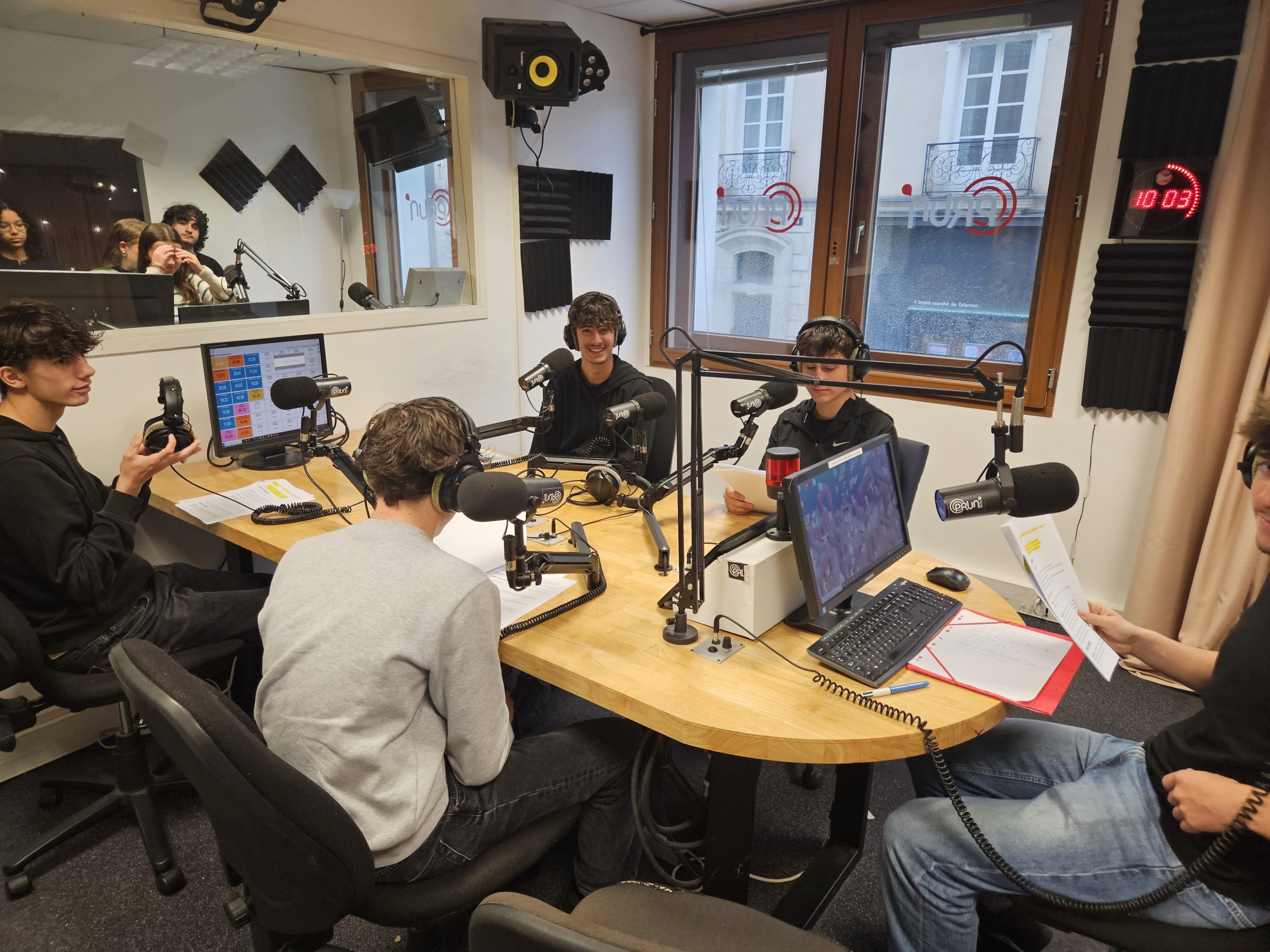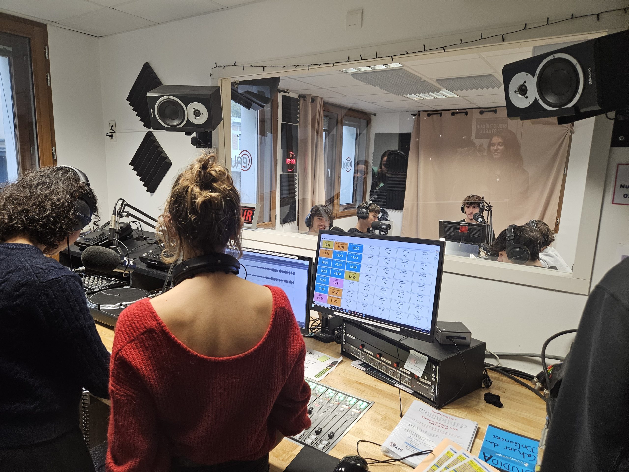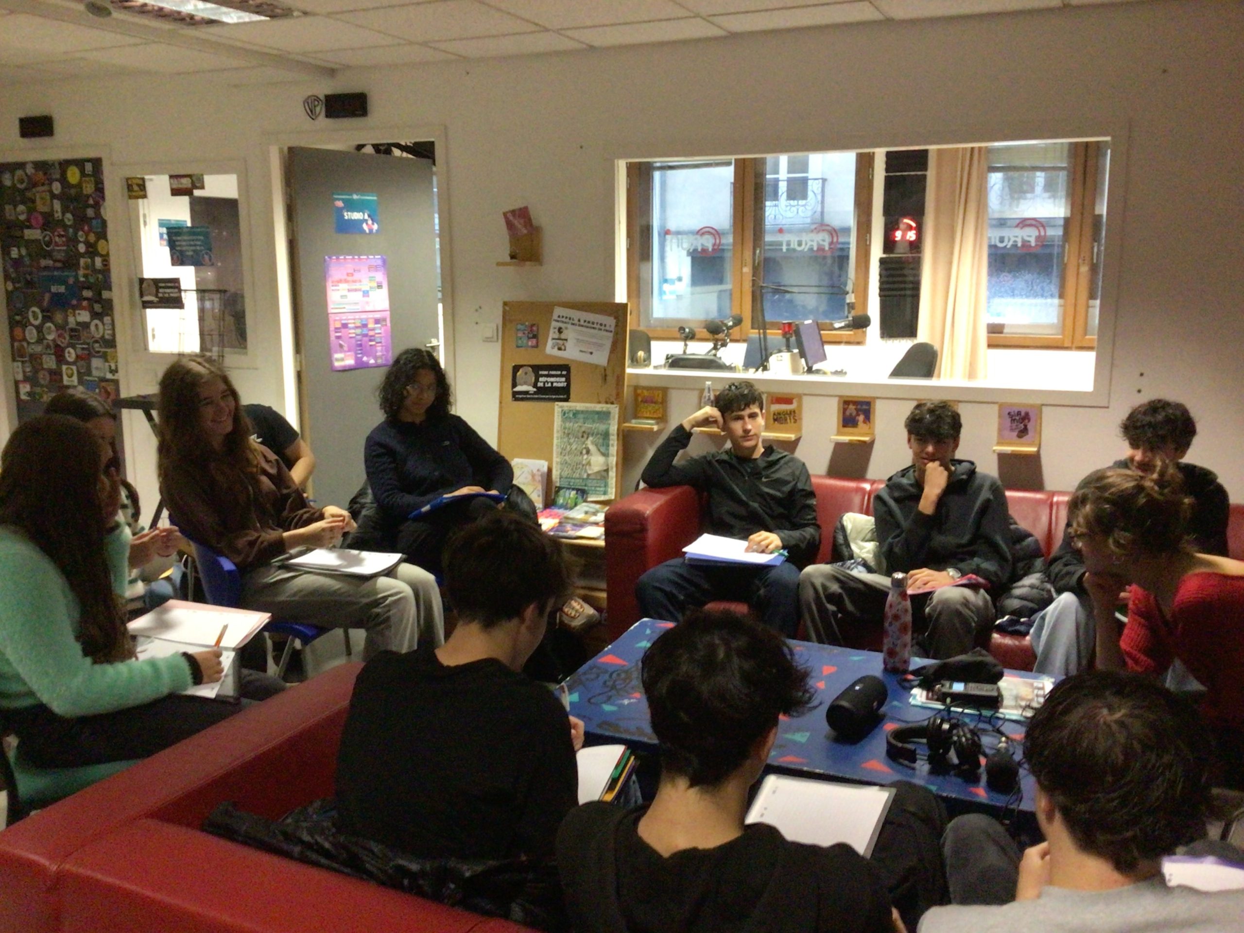 La matinée du 9 octobre, nos lycéens de la spécialité Histoire-Géographie, Géopolitique et Sciences Politiques (HGGSP) ont eu la chance de visiter les studios de la radio Prun’. Après une discussion passionnante sur le métier de journaliste et les particularités de cette radio associative, ils ont pu découvrir les coulisses de la production radio en visitant les deux studios.