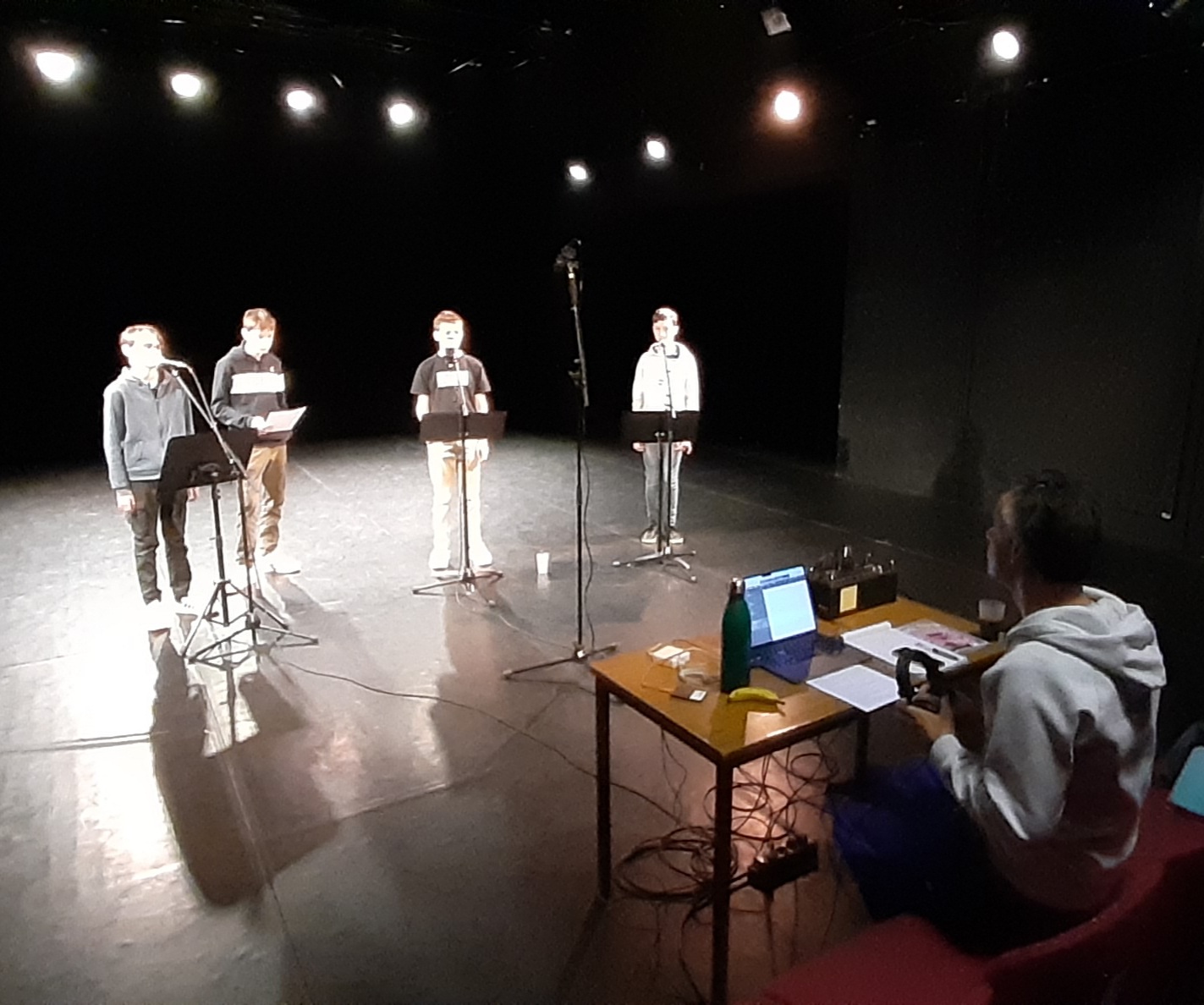 Ils ont pu aussi réfléchir à différents bruitages afin d’améliorer le rendu. Le montage sera finalisé par l’équipe du théâtre pour une restitution le 24 mai.