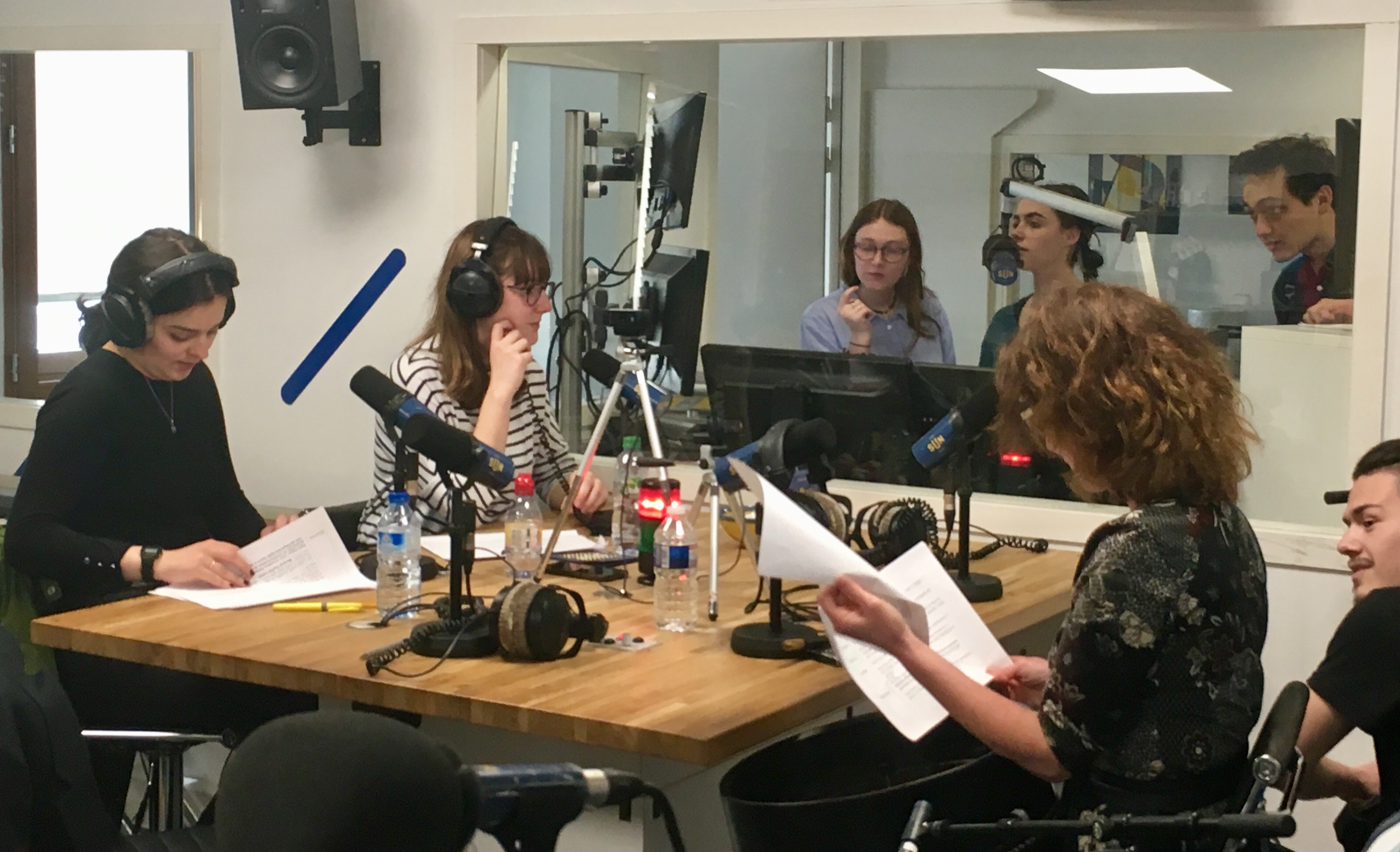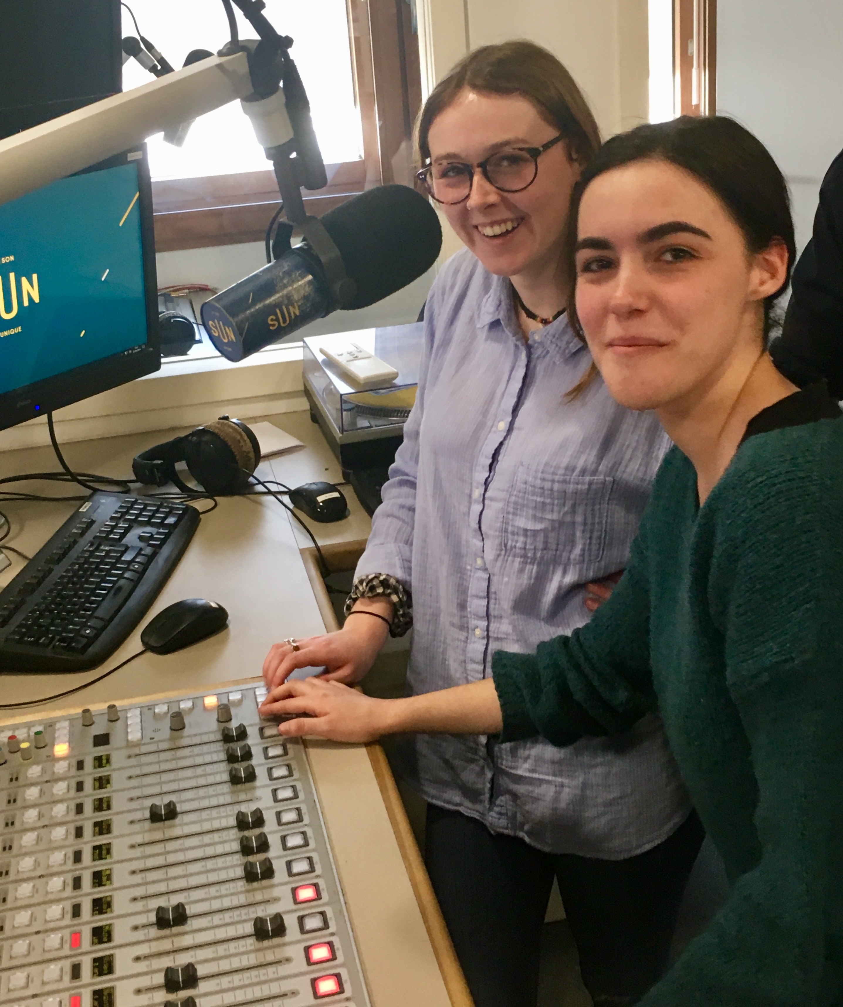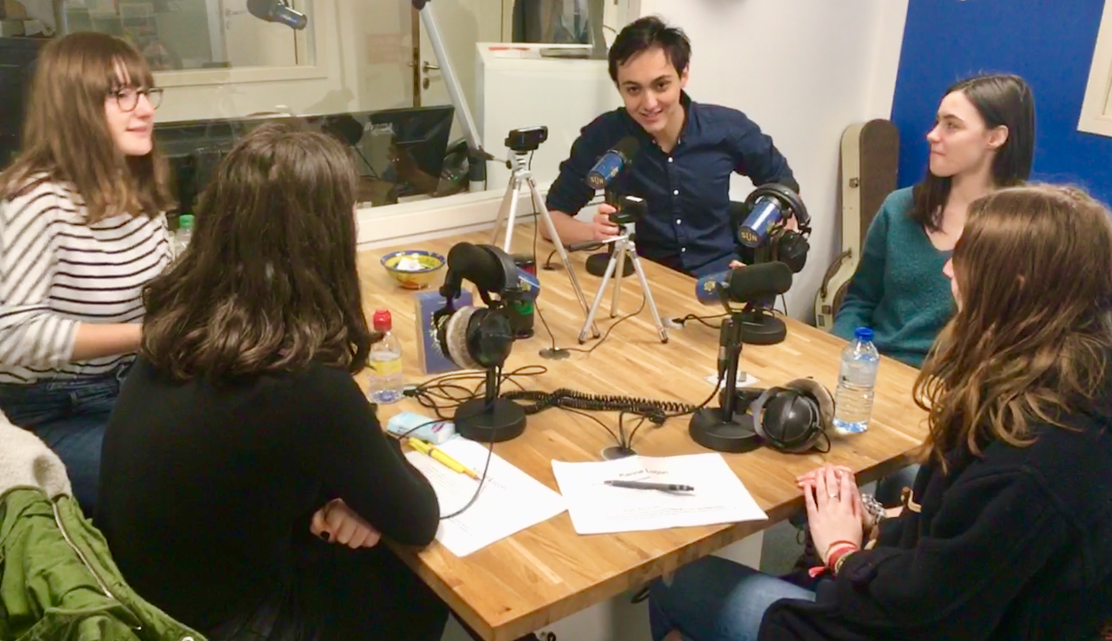 Amélie, Floriane au micro, Loïc, Camille et Telma à la régie de SUN Radio ! C’était mercredi 27 mars dans les locaux de la Radio Nantaise.