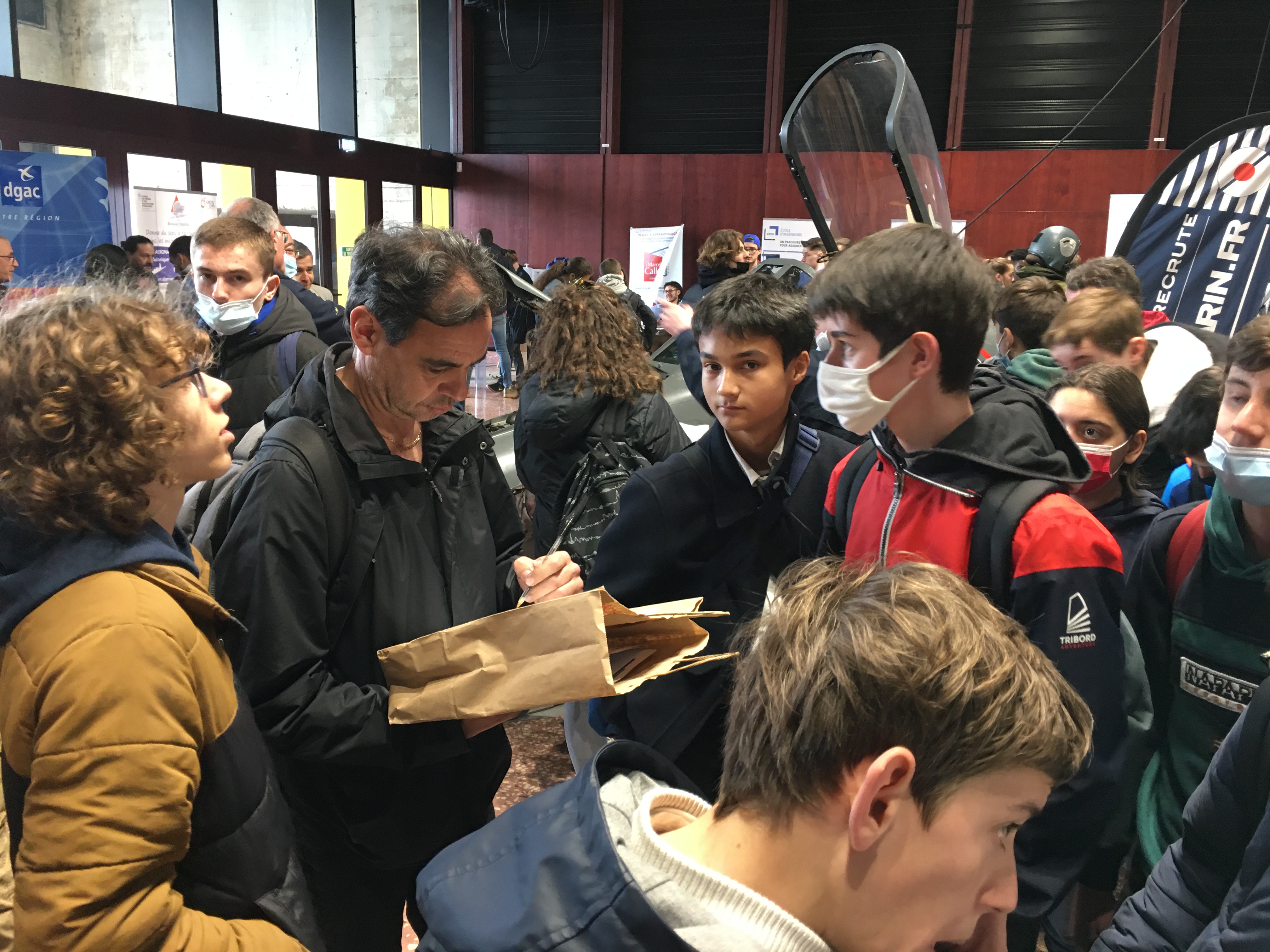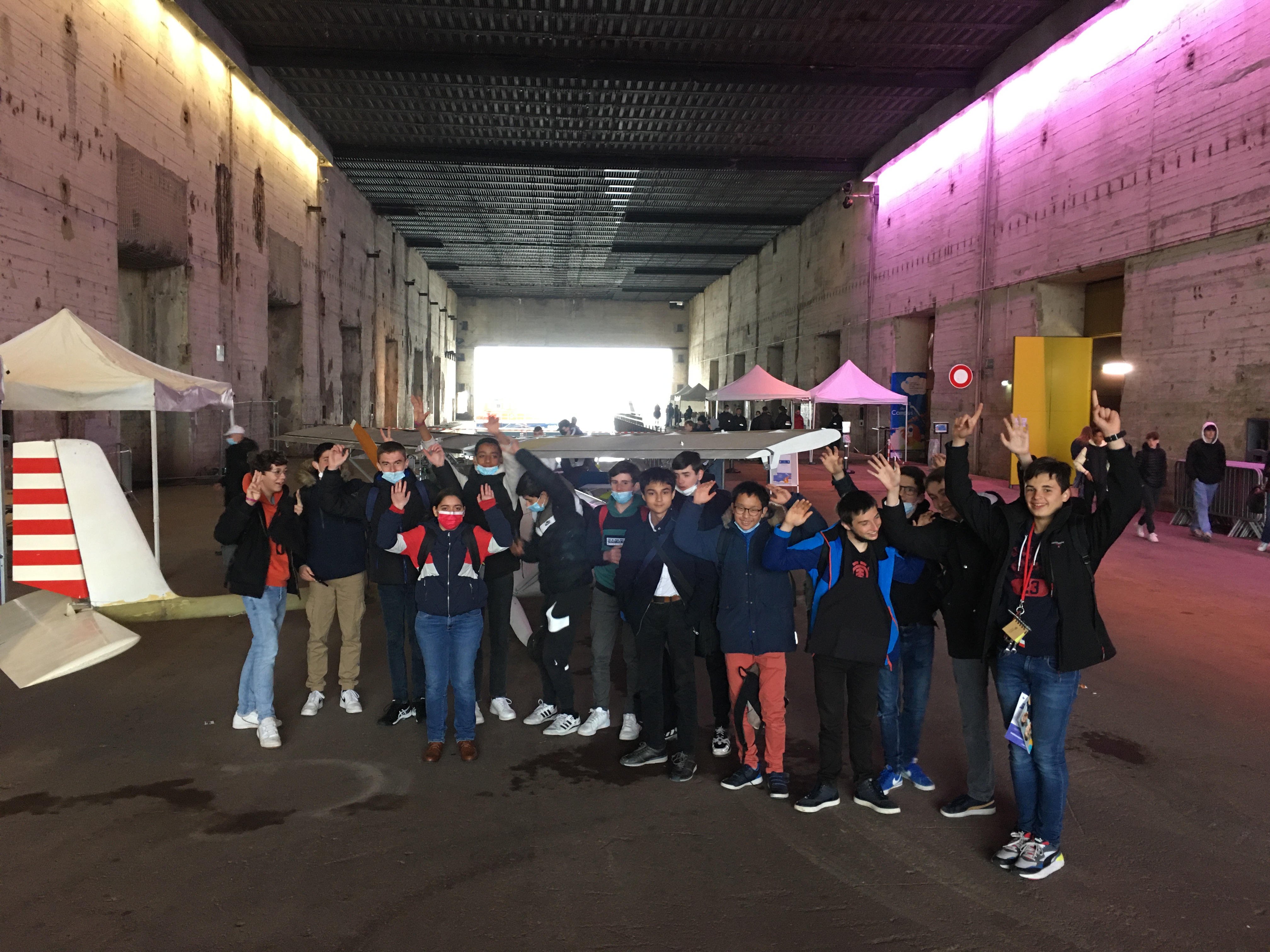 Dix-sept élèves de 3ème des collèges de St Donatien, en particulier de l’option Découverte de l’aéronautique, et de Bon Conseil, avaient rendez-vous ce jeudi 31 mars à 7h10 à la gare pour se rendre aux Ailes du Campus, un événement organisé à St Nazaire par le Campus des métiers et des qualifications d’excellence.