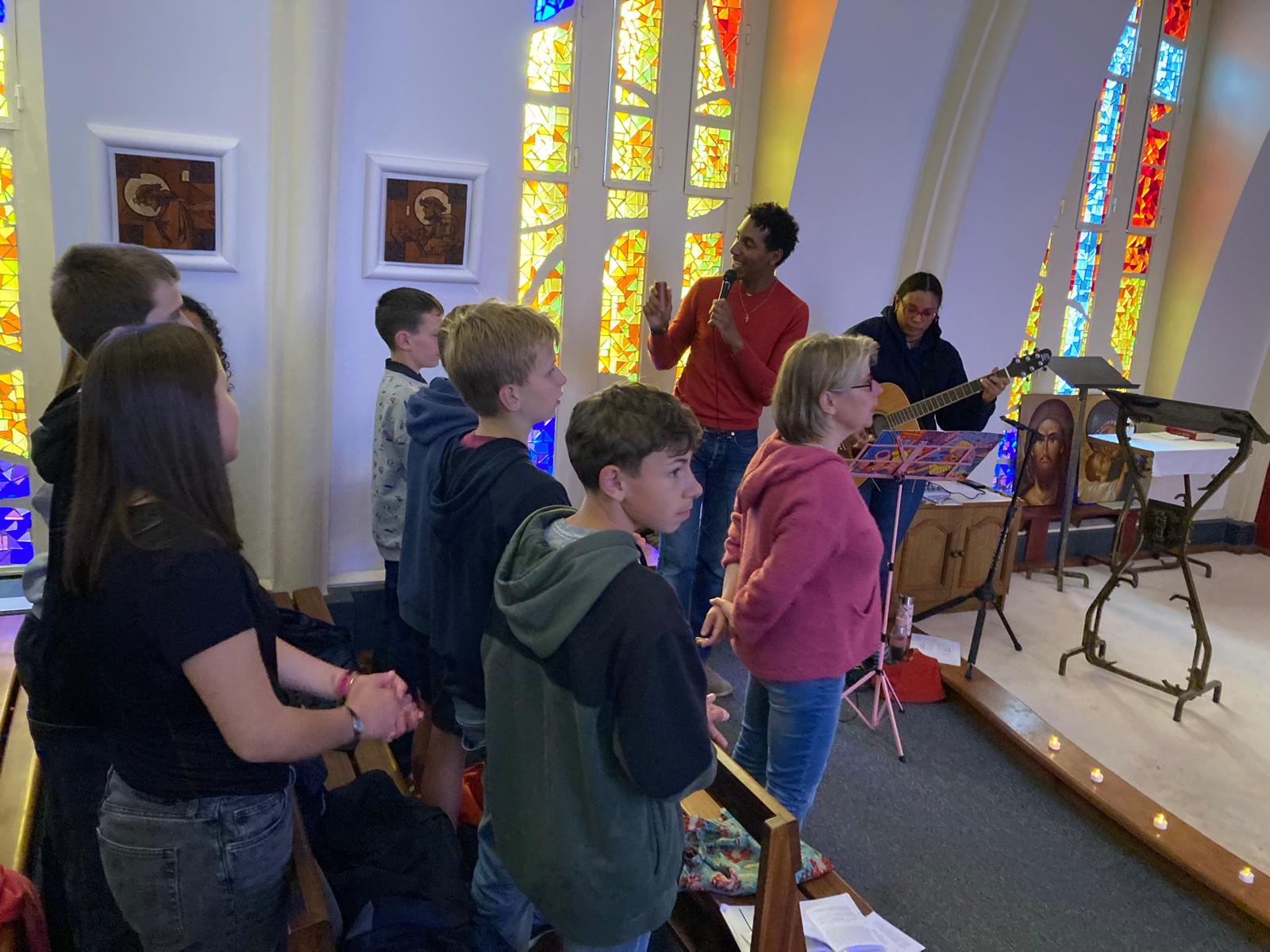 Le dimanche matin notre joyeux groupe s’est rendu à la messe avec les paroissiens de Derval après que chaque jeune ait écrit une lettre à Dieu en formulant demandes, pardons, ou actions de grâces. Toutes les lettres ont été déposées devant l’autel au moment de l’offertoire pendant la messe.