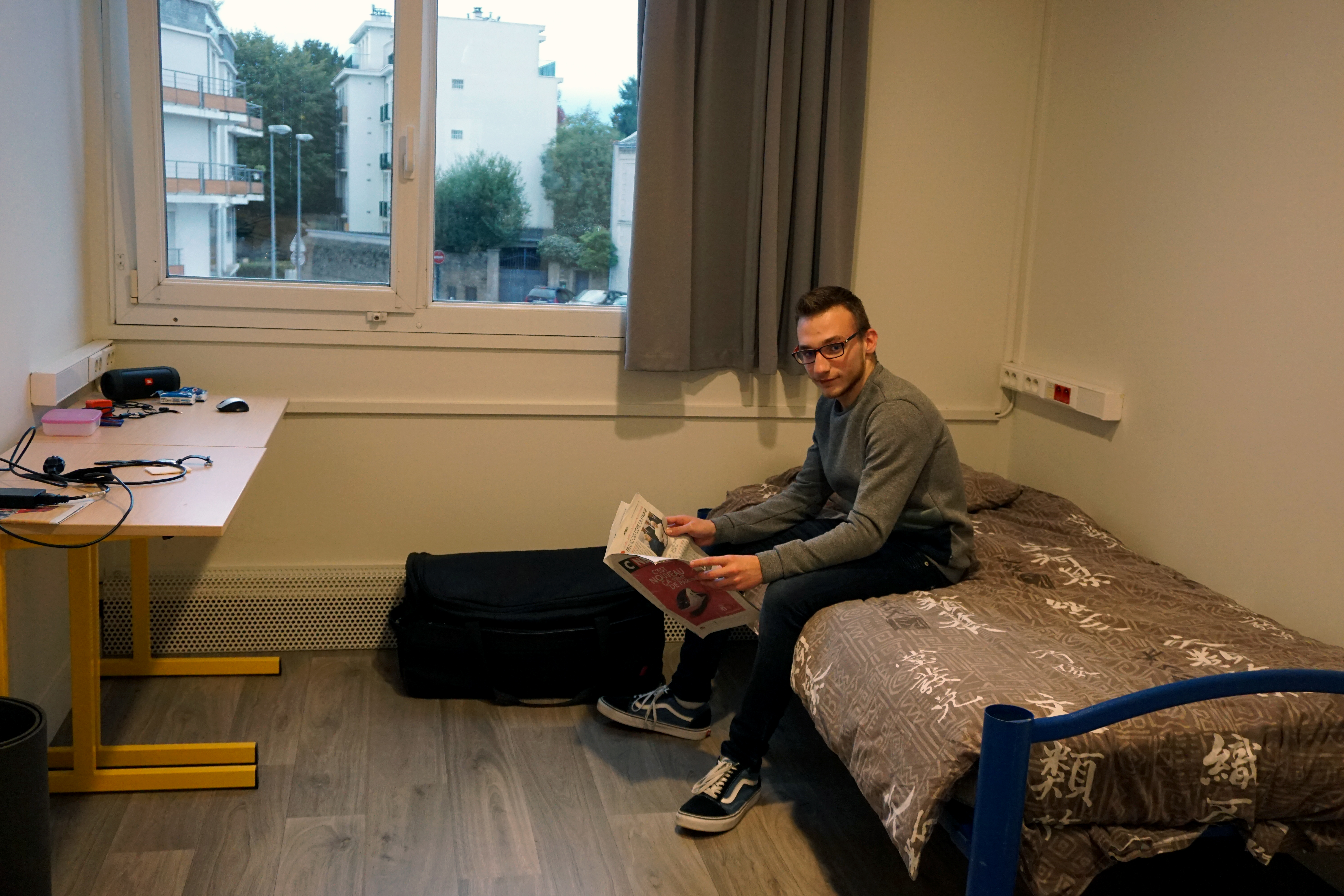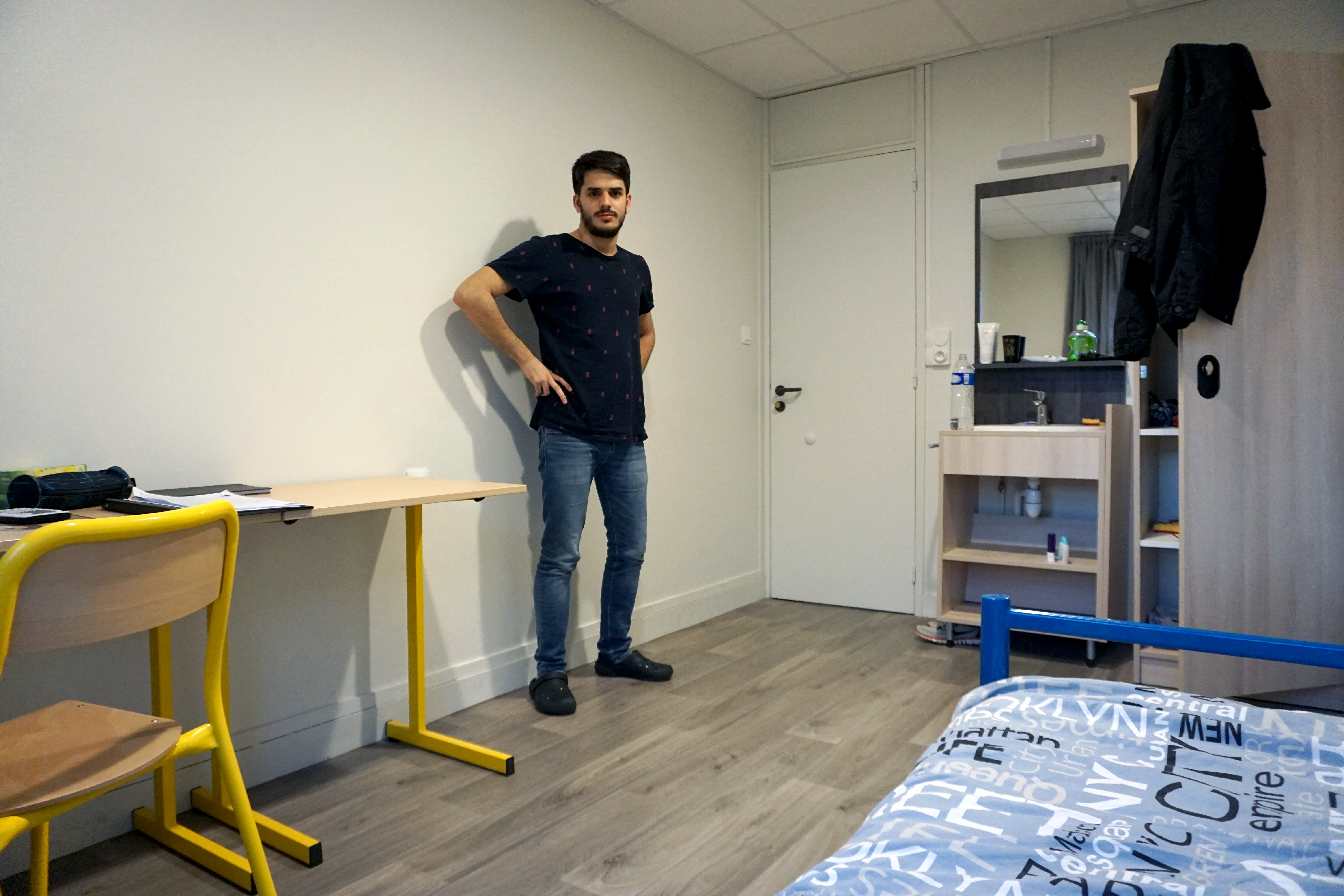 • L’étudiant(e) dispose d’une chambre individuelle avec un bureau, un placard et un lavabo.
